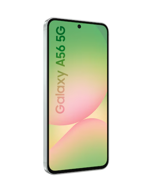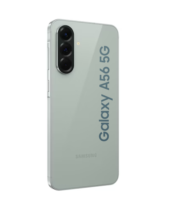 Introducing the Galaxy A56 5G. With 0.74 cm thickness and 198 g weight, Galaxy A56 5G has a good grip. The enhanced cameras are grouped to match the new linear design. Galaxy A56 5G has three color options* to choose from — Awesome Olive, Awesome Lightgray, and Awesome Graphite.